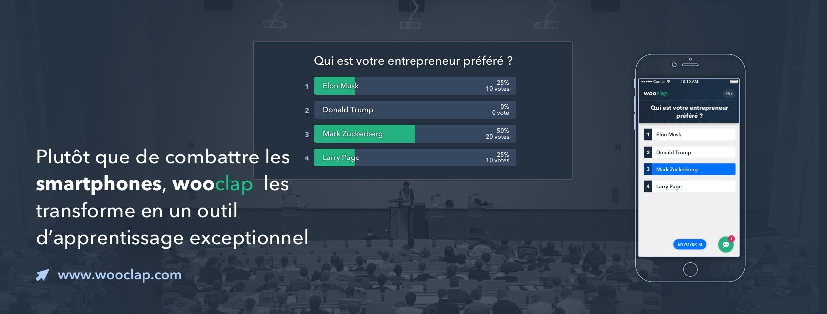 O Wooclap é uma ferramenta de interação em tempo real destinada a professores e palestrantes. A plataforma permite criar apresentações dinâmicas e interativas para aumentar o engajamento do público, destacando-se pela sua facilidade de uso e funcionalidades como quizzes ao vivo e nuvens de palavras.